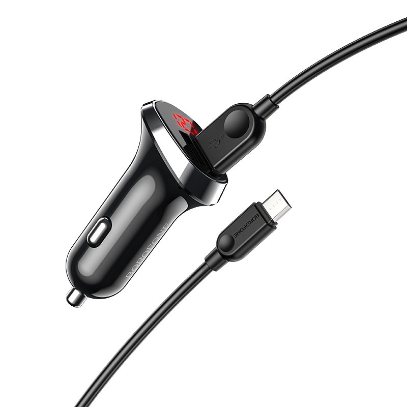 Borofone Car charger BZ15 Auspicious – 2xUSB – 2,4A with USB to MicroUSB cable black