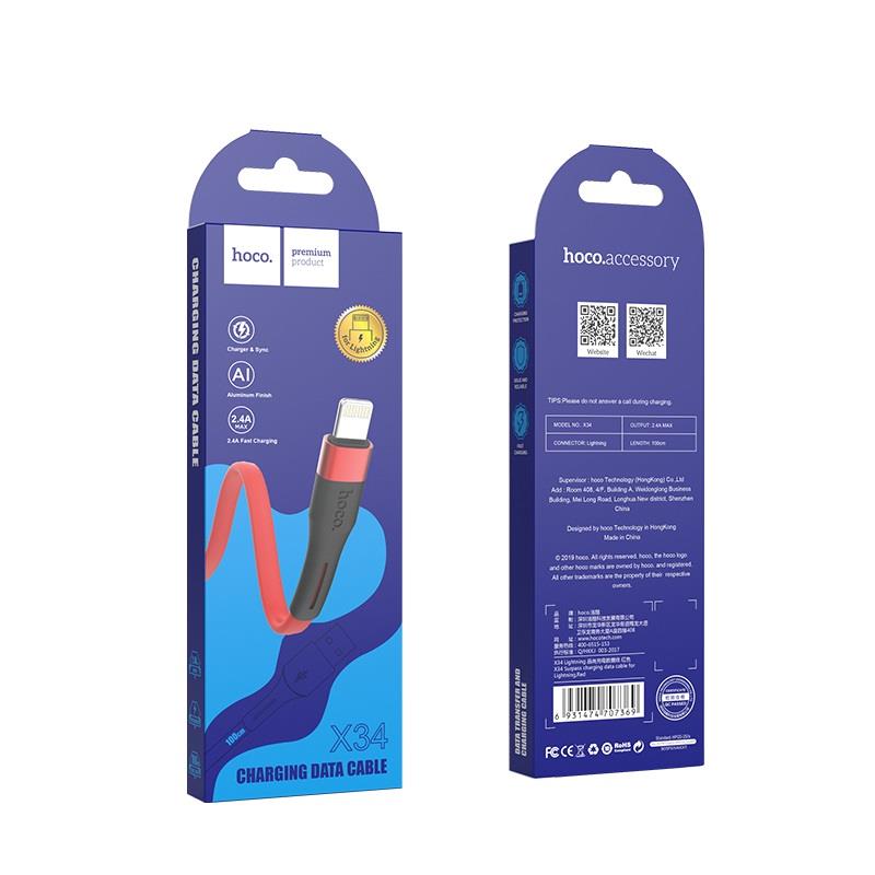 HOCO X34 Surpass ΚΑΛΩΔΙΟ ΦΟΡΤΙΣΗΣ Lightning ΚΟΚΚΙΝΟ