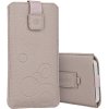 The phone is slipped in from the top of the case and the Velcro fastening prevents it from falling out. The PULL-UP strap inside the case allows you to quickly and easily pull your phone out. The embossed logo on the clasp adds an elegant touch.