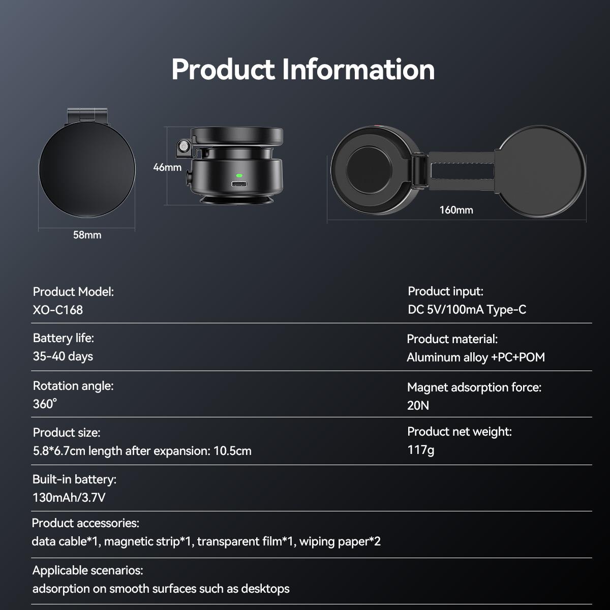 XO C168 ROTARY ΜΑΓΝΗΤΙΚΗ ΒΑΣΗ ΣΤΗΡΙΞΗΣ, BENTOYZA, ΜΑΥΡΟ