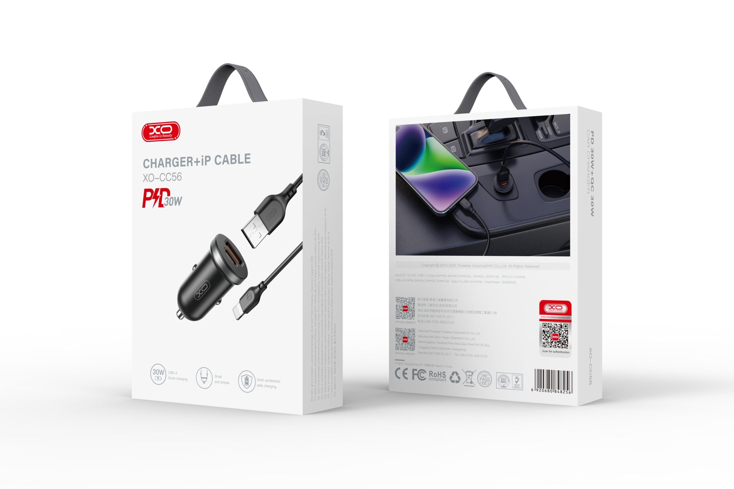 XO CC56 MINI ΦΟΡΤΙΣΤΗΣ ΑΥΤΟΚΙΝΗΤΟΥ ΜΕ ΚΑΛΩΔΙΟ LIGHTNING, 2 ΘΥΡΕΣ, 30W, ΜΑΥΡΟΣ