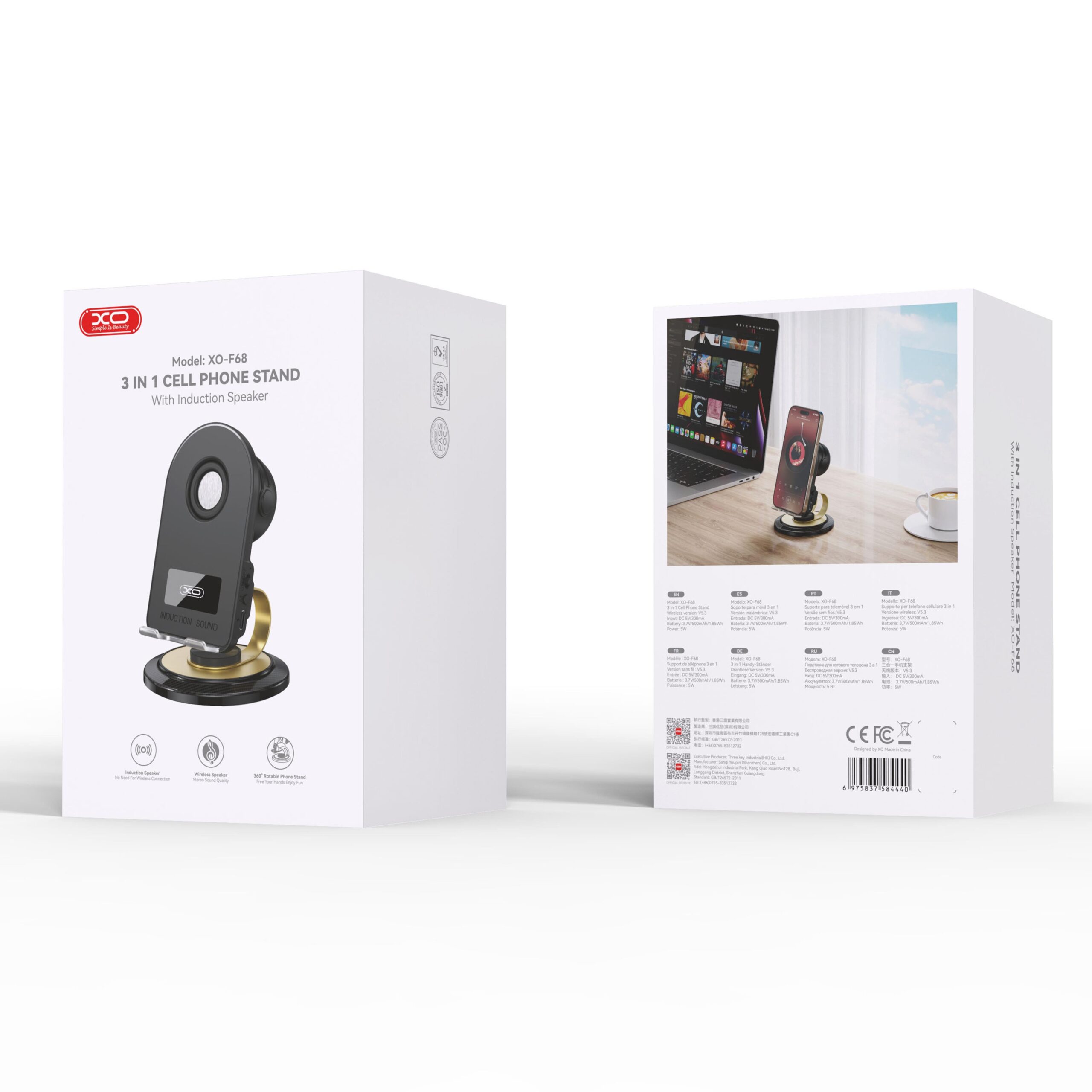 XO F68 INDUCTIVE ΒΑΣΗ ΚΙΝΗΤΟΥ ΜΕ BLUETOOTH ΗΧΕΙΟ, ΜΑΥΡΟ