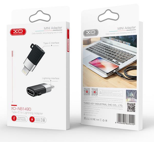 XO adapter NB 149-D adapter from a USB type-C female socket to a lightning male socket. Enables loading and data transmission.