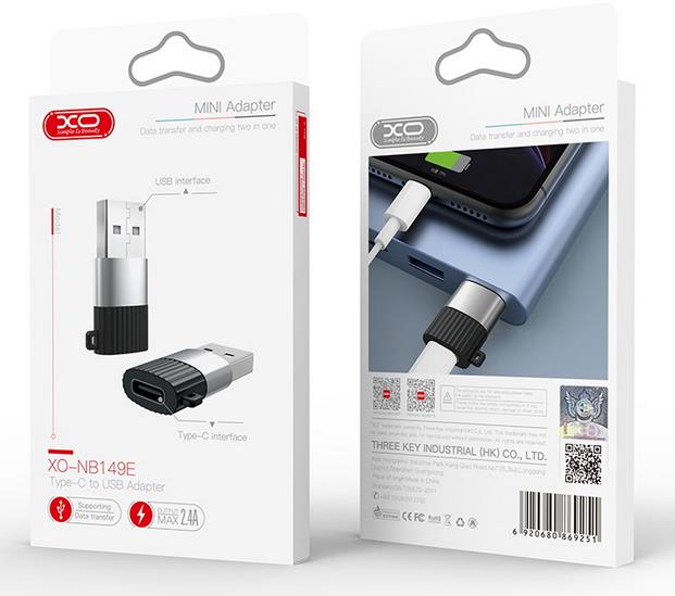 XO adapter NB 149-E dapter from a USB type-C socket to a USB socket. Enables loading and data transmission. Compatible with smartphones, tablets, laptops etc. equipped with type C connector.