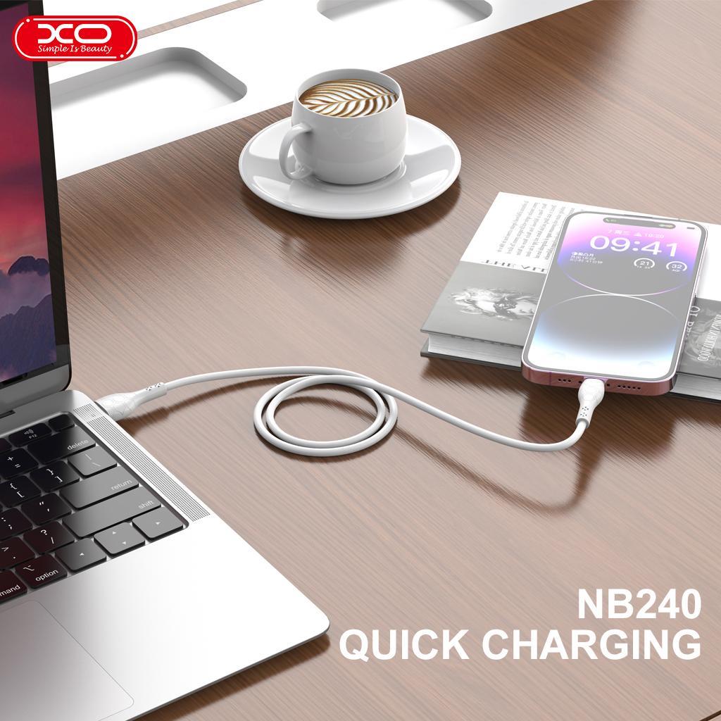 XO NB240 FOOTBALL ΚΑΛΩΔΙΟ ΦΟΡΤΙΣΗΣ LIGHTNING SOFT RUBBER, ΛΕΥΚΟ